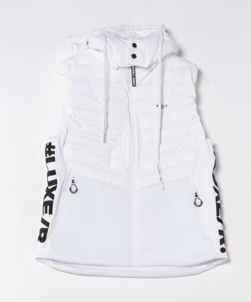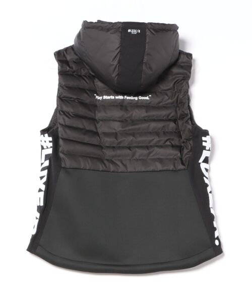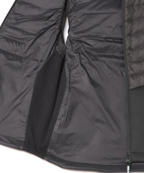 素材:表側:ポリエステル100%,裏側:ポリエステル%,詰め物:ダウン95%,フェザー5%,別布:ポリエステル95%,ポリウレタン5%