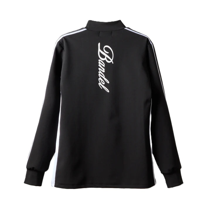 裏起毛素材を使用し前身頃と後身頃で全く違うデザインを組み合わせ首から袖口にかけてサイドラインを施しました。