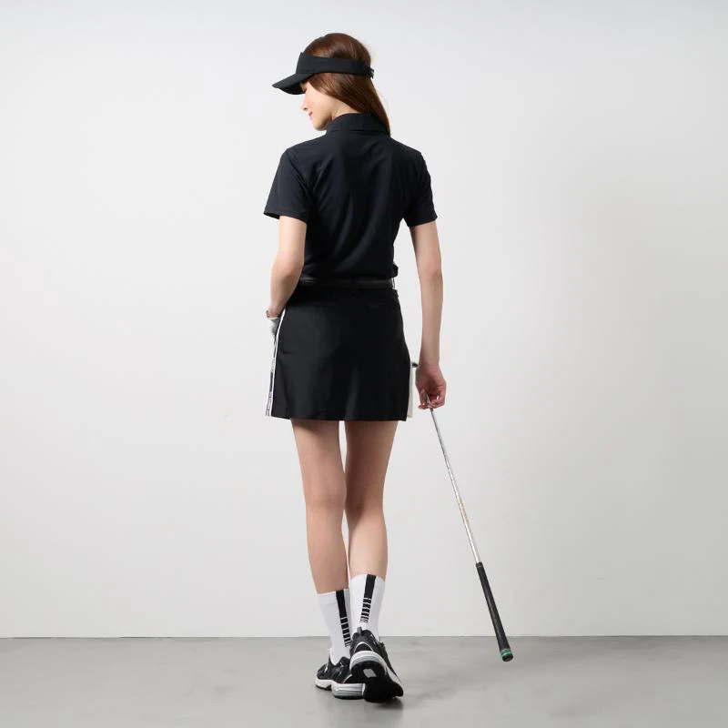 吸汗速乾性に優れた鹿の子素材を使用し、背中と脇にアクセントになるデザインテープを配しました。