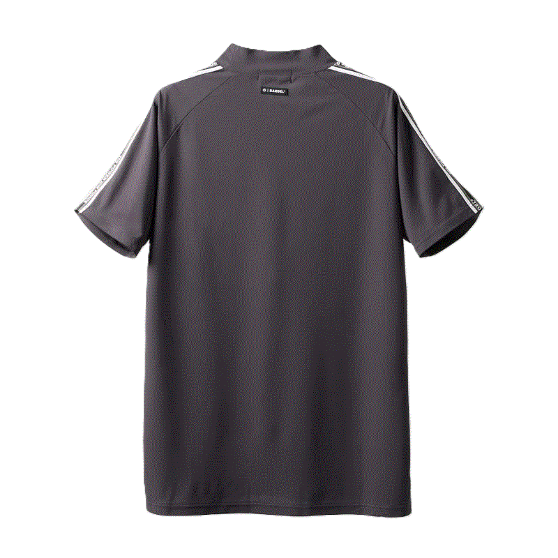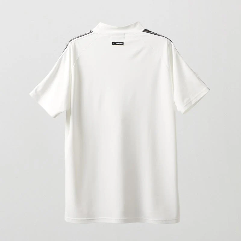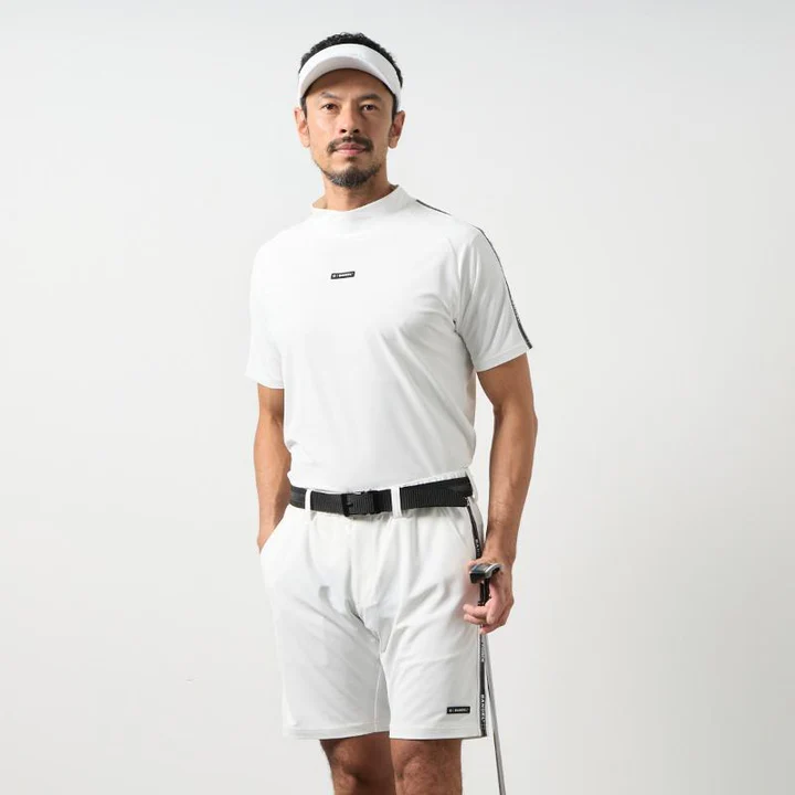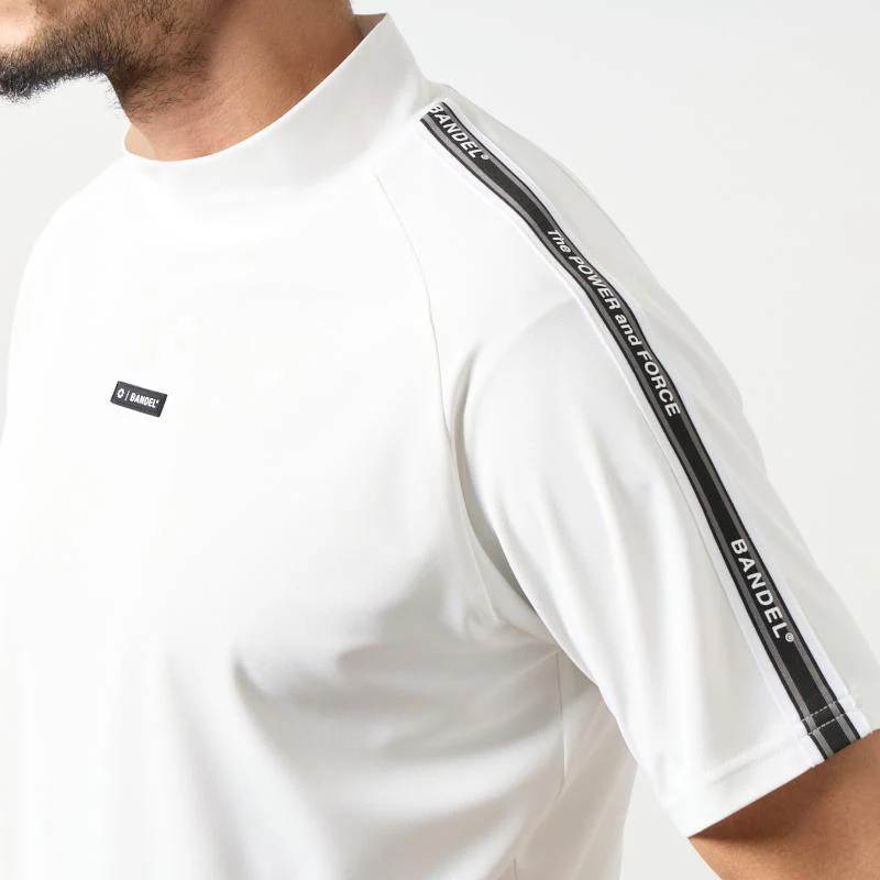 吸汗速乾性に優れた鹿の子素材を使用したモックネックシャツは軽量で、袖山にアクセントになるデザインテープを配しました。