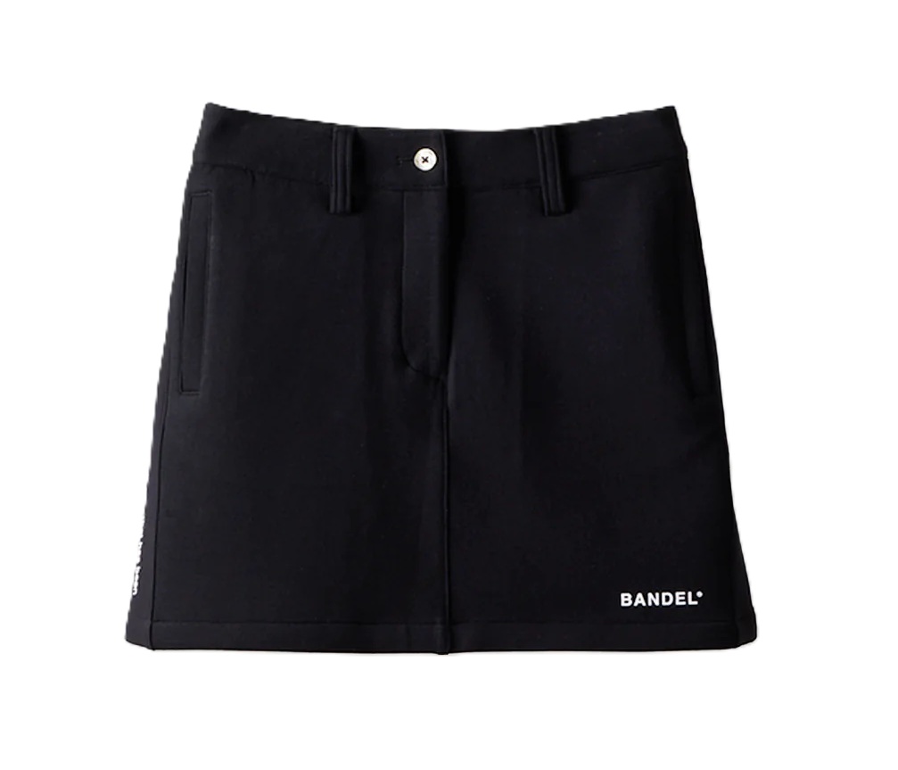 ボンディング素材のタイトスカートの後身頃をストレッチ布帛で切り替え、右サイドにコンセプトノーツをプリントしました。