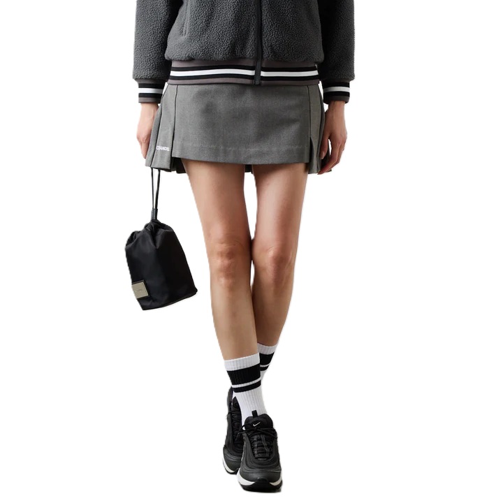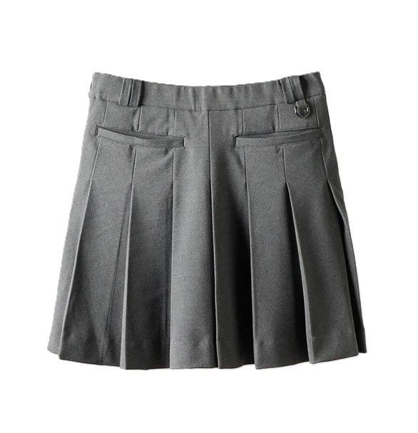 起毛感のあるフランネル素材を使用し前後の着丈に差をつけて、バックスタイルのみをプリーツデザインにしたスカートです。