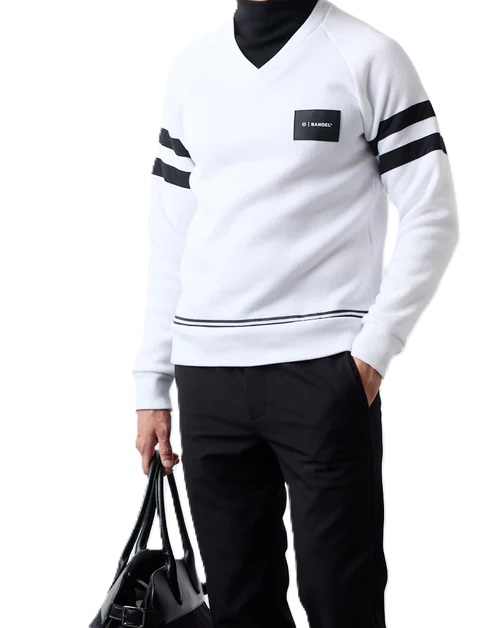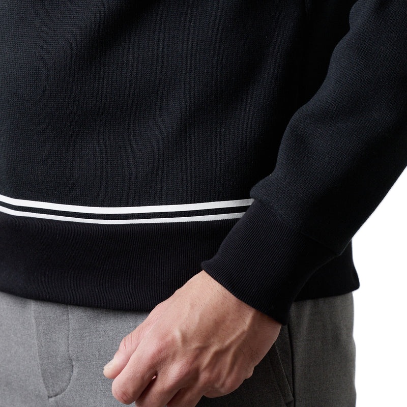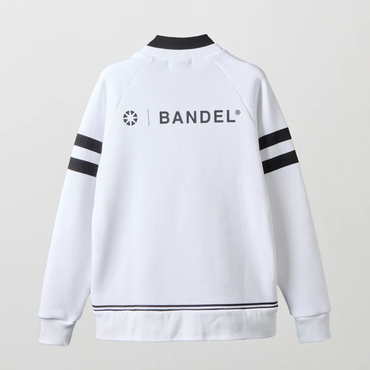 胸にはワッペン、背面にはロゴ、袖と裾に配されたラインがアクセントとして存在感を引き立てます。