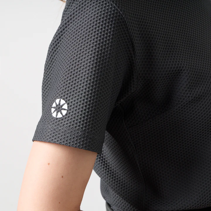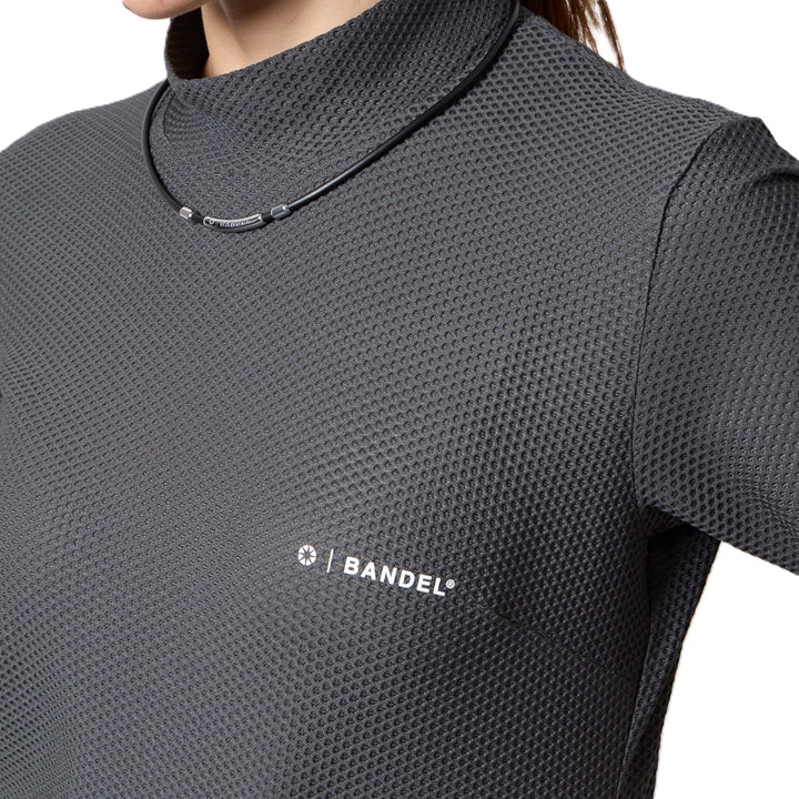 高い吸汗速乾性とUVカット機能(93.2%)を実現したドライワッフル素材を使用したモックネックシャツです。