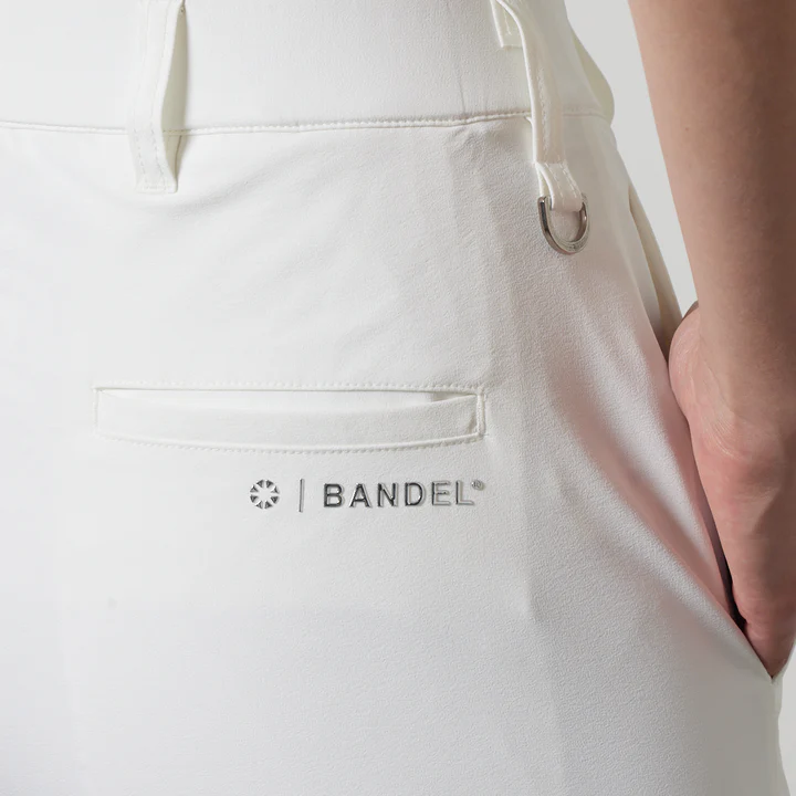 左ワタリポケット下とヒップポケット右下にシルバーの3DプリントでBANDELロゴを配置したシンプルかつスマートなデザイン。