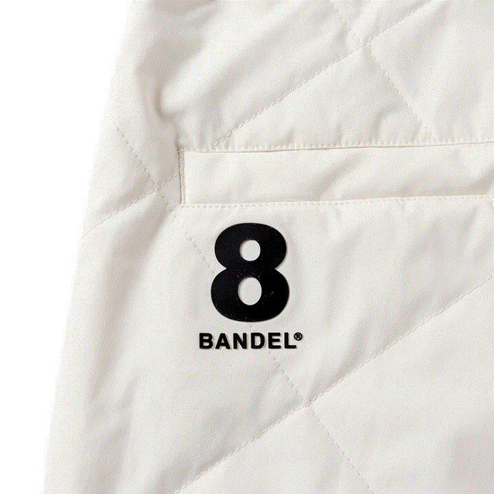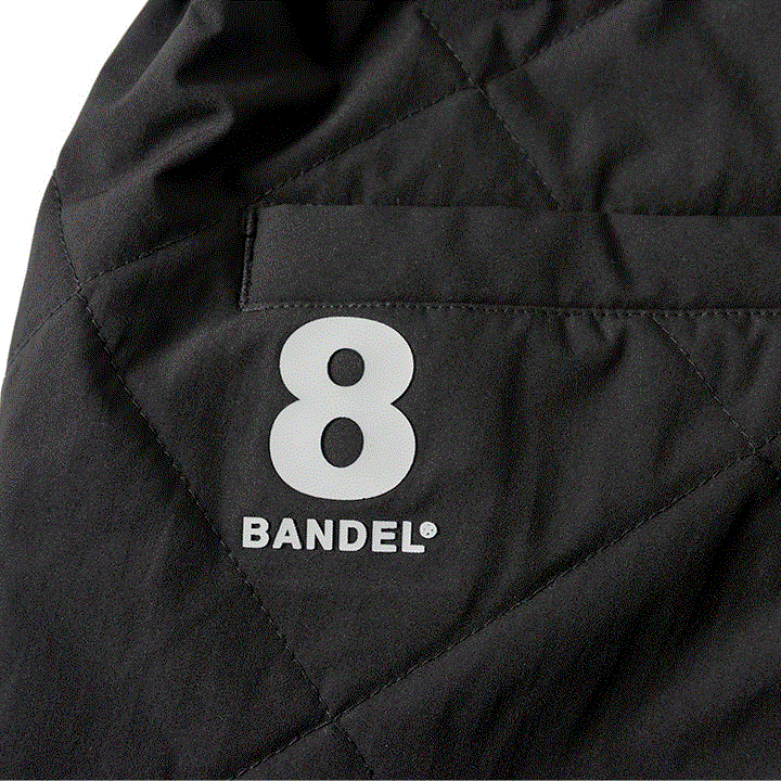 襟・袖口・裾のリブには温かみのあるコットン混リブを採用しました。バックポケット右のアウトポケットと左ポケット下のコラボロゴがバックスタイルのアクセントです。フロント左脛部分にダブルネームのタイベックワッペンを配しました。