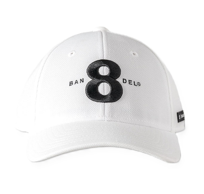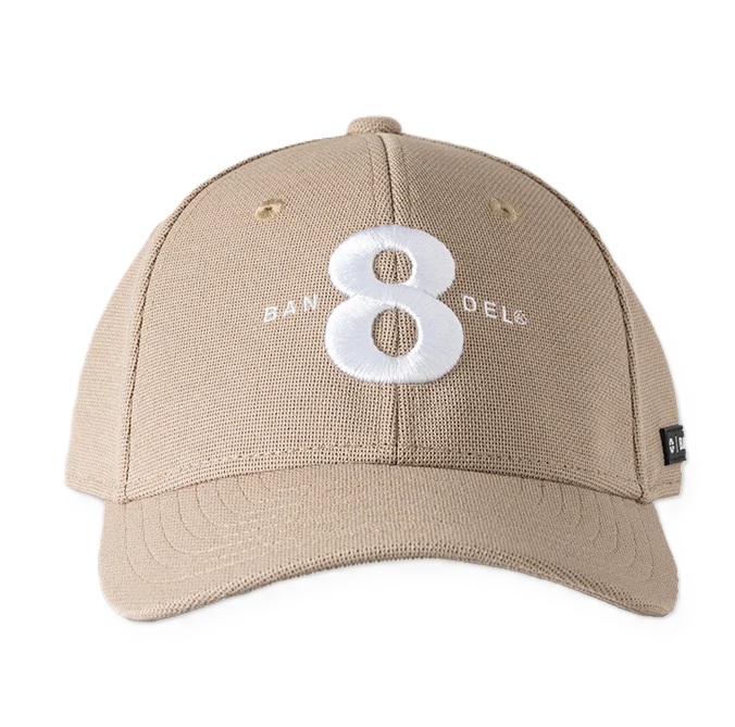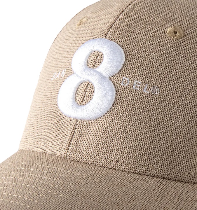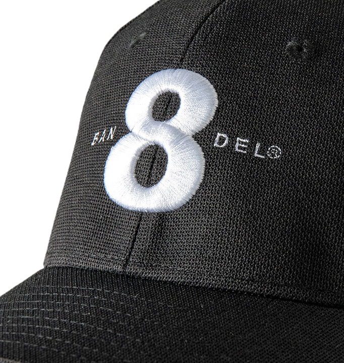 メッシュ素材のキャップクラウンの8(エイト)とBANDELロゴを刺繍した