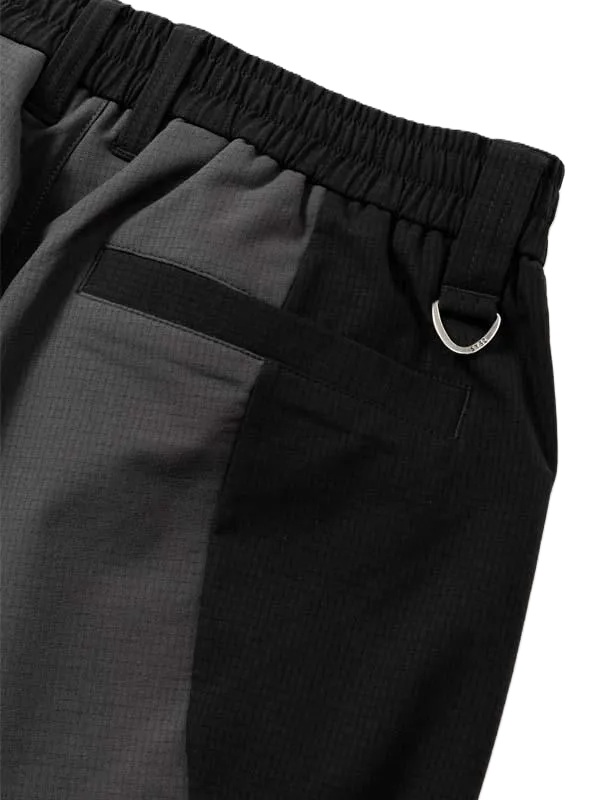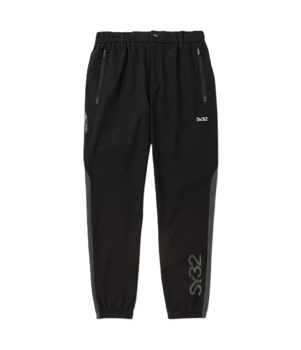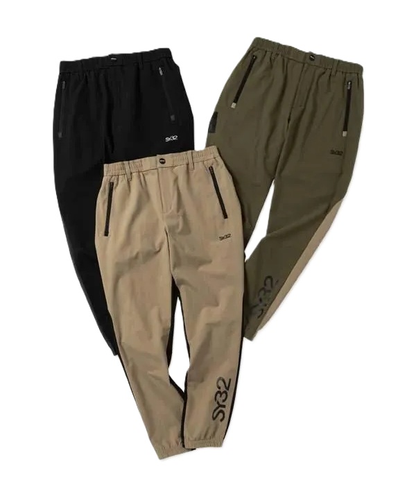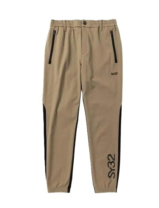 前後でカラーが違いの切り替えしが特徴的なパンツ。裾にはセットアップアイテムのトップス(SYG-25A1-23)と同様のロゴを採用。