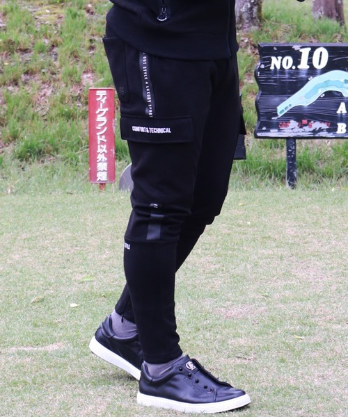 ●プリント ⇒ 左ポケット下、膝裏にロゴ/サイドにライン&ロゴ