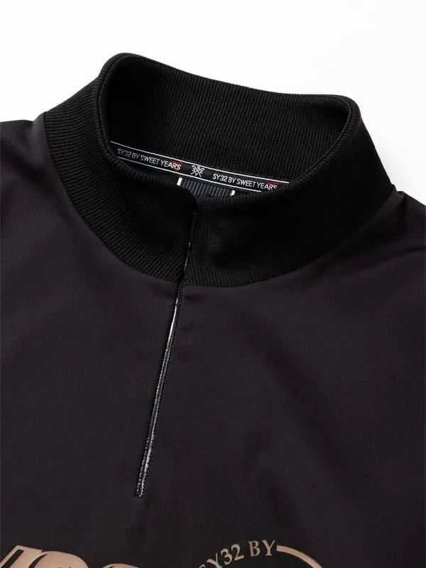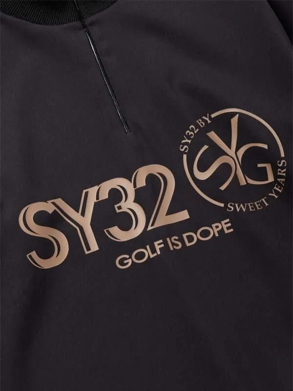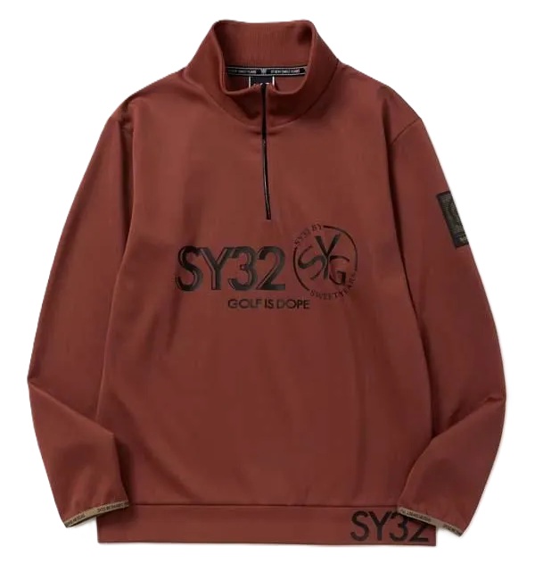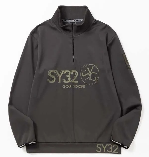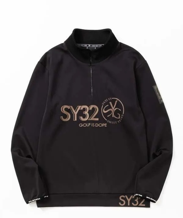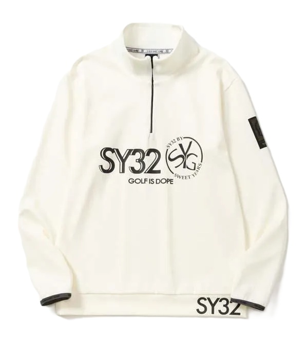 ストレッチ素材を使用したハリ感のある生地のハーフジップスウェットシャツ。UV加工が施されているので、紫外線から肌を守りながらプレーできます。光沢のあるファスナーを採用。胸には大き目なSYロゴ、左袖には新デザインのワッペン。