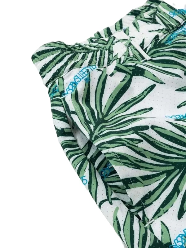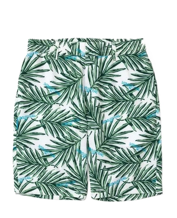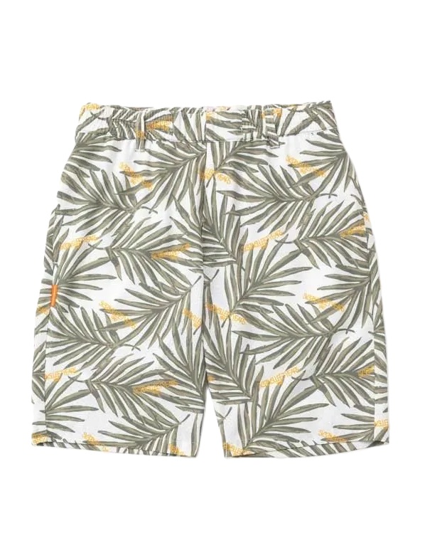 穏やかな色のリゾート感あるボタニカルリーフ総柄を施したショーツアイテム。軽量速乾ストレッチポリエステル素材。素材には小さなパンチングドットホールが加工され通気性もよく、デイリー使いにも最適です。同素材のSYG-26S1-39(フーディーJK)やSYG-26S1-41(シャツ)とのセットアップがおすすめコ-デです。