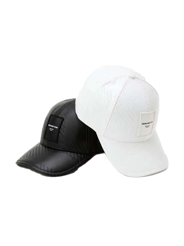 高級感のあるレザーワッペンと、立体感を演出するエンボス加工デザインが特徴のゴルフキャップ。同シリーズのバッグと共通企画で、統一感のあるスタイリングを楽しめます。