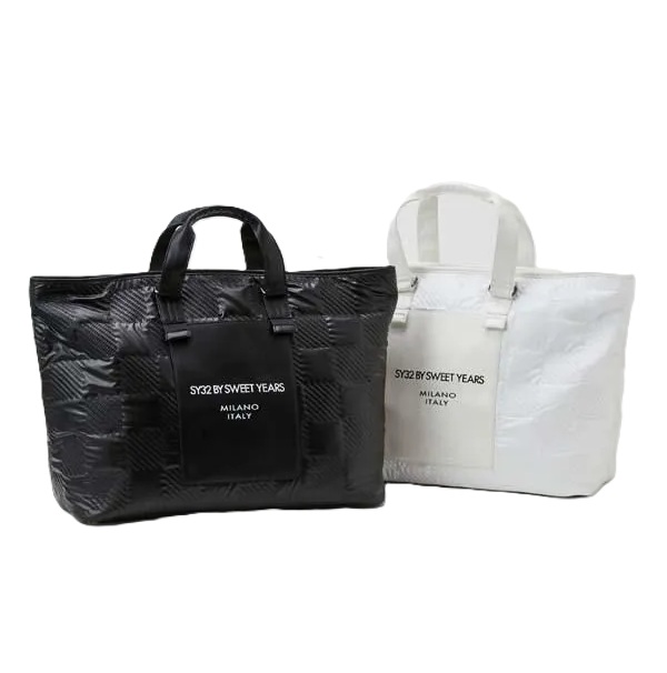 存在感のあるデザインはもちろん、収納力の高い定番の船型を採用した使いやすさもポイント。正面には長方形の合皮にSY32ロゴのプリントで高級感を演出。