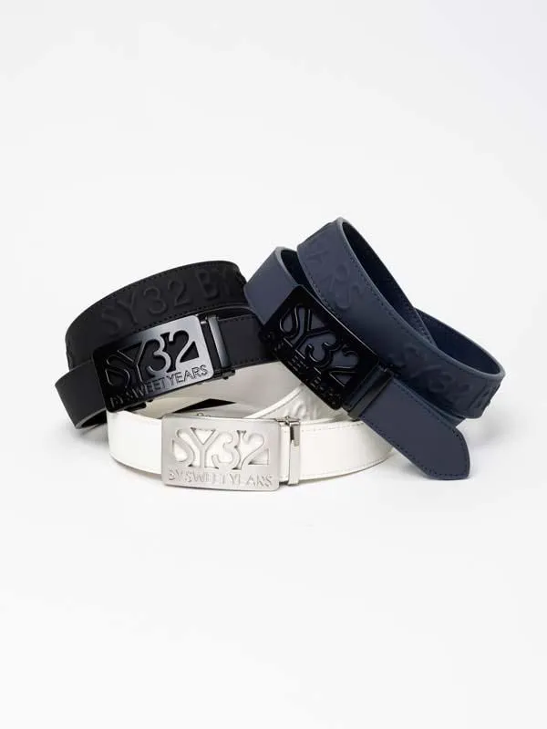 SY32オリジナルデザインのロゴバックルが特徴のレザーベルト。ロゴバックルはスライド式で、スムーズな着脱が可能です。ベルト部分にはエンボス加工を施し、シンプルな見た目ながらさりげない主張が目を引く、他と差をつけるのにピッタリなベルトです。