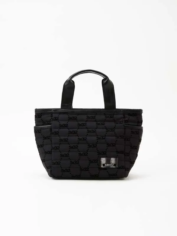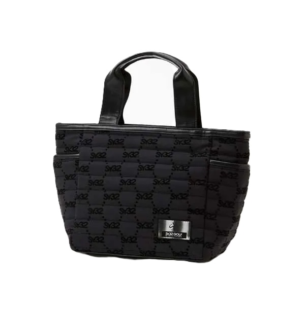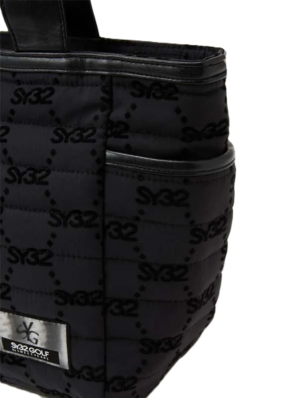 ウェアでも採用されている、SY32のフロッキープリントが施されたカートバッグ。利便性の高い定番の船型を採用。開口部はファスナーで開閉するタイプになっています。
